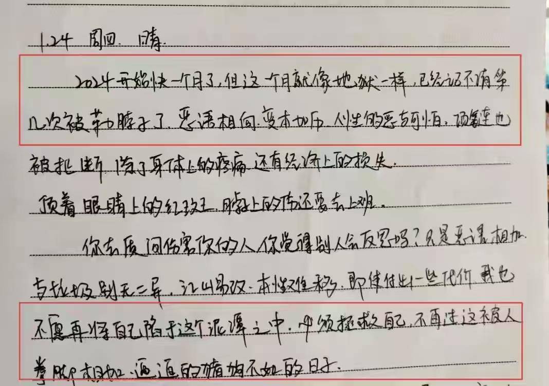 她不想让自己的家人因她受到伤害,平时给家里也是报喜不报忧,其实她过的一点都不开心,也不敢给任何人说,只能将自己的心声,写在日记上。即便是发到朋友圈,也是仅自己可见,根本就没有发出来。
