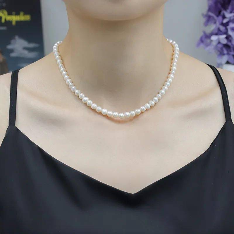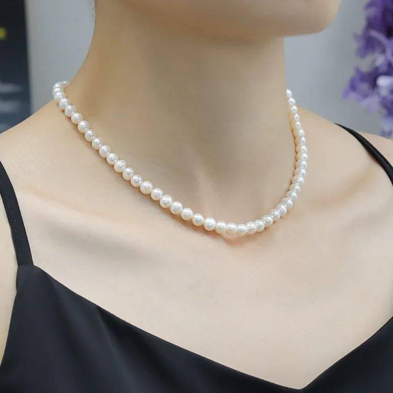 珍珠项链可谓是穿搭中的王者,卫衣、西装、礼服,只有你想不到没有它不能搭的。特别是这种颗粒较小的珍珠,戴到锁骨这个长度刚刚好起提亮的效果,也不会显得很夸张。
