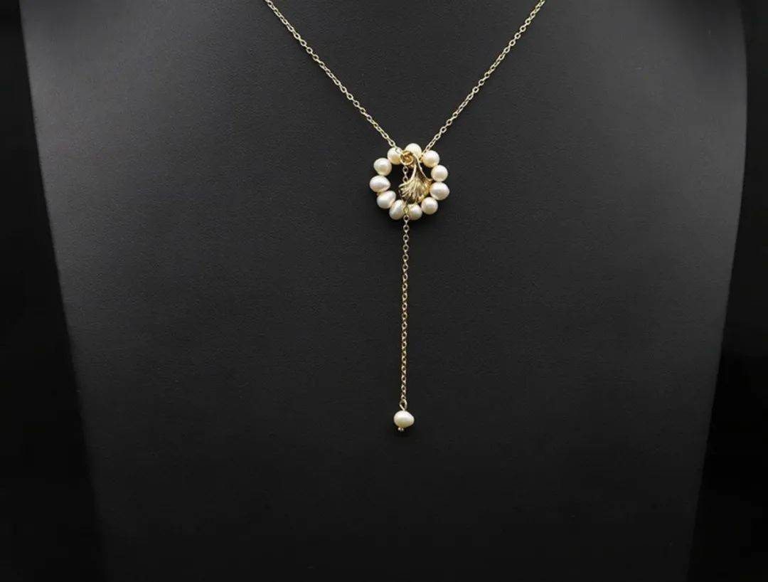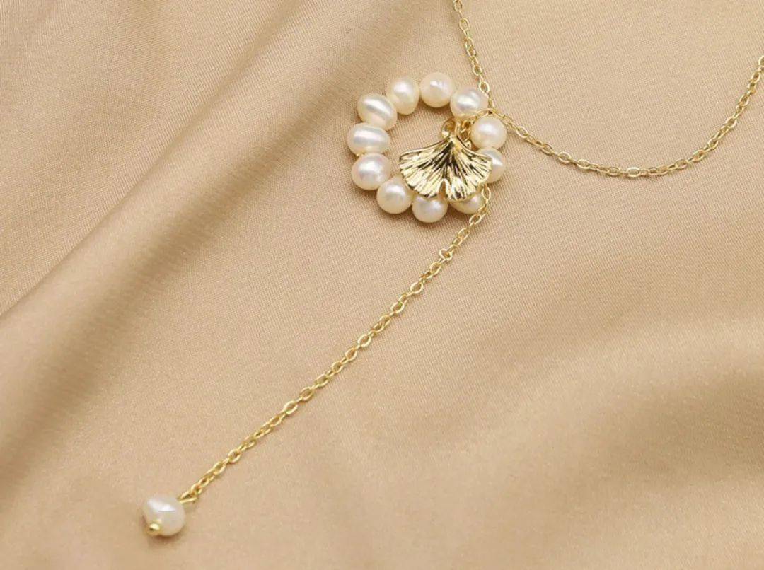 这款项链在设计上下足了功夫,金属银杏配合着温柔的珍珠圈自带一种和谐的美感。