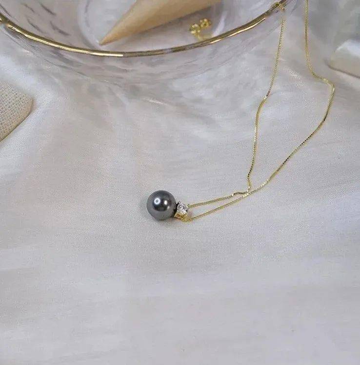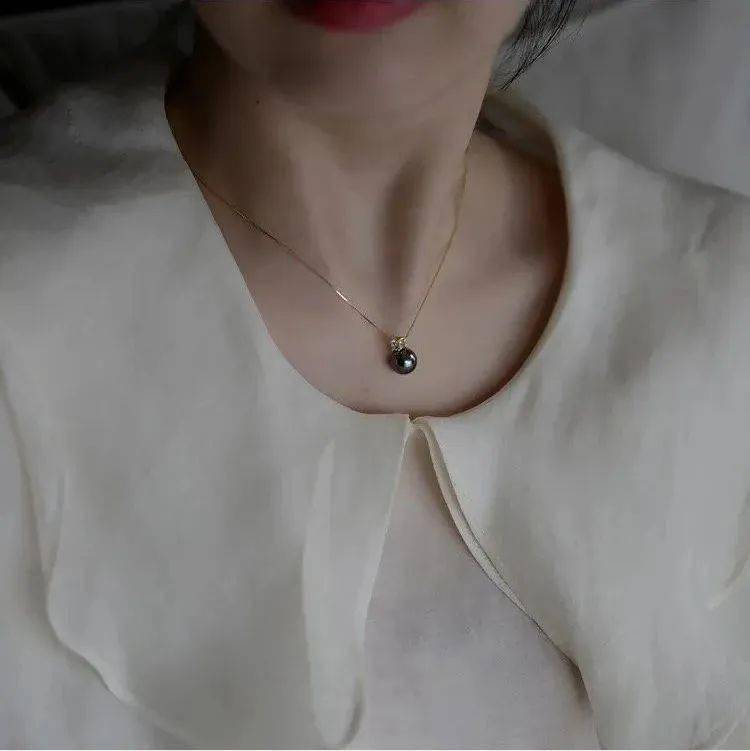 别致的黑珍珠与细细的链条,绕在颈间,由内而外透出清冷高级感,美得不张扬。