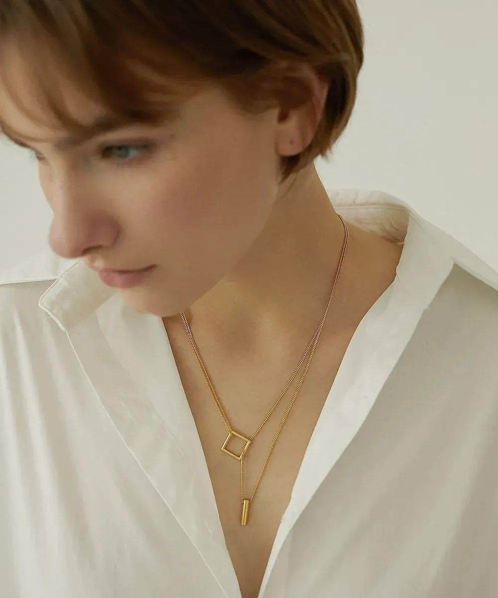 双层链条叠加金属几何图形,在视觉上营造出项链叠戴的效果,创造1+12的效果,S925银的材质很有质感。