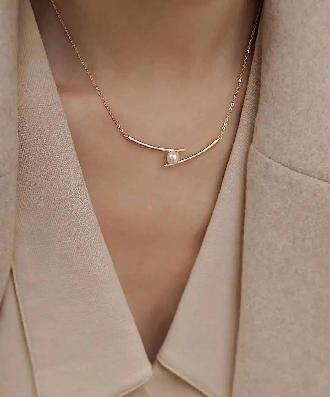 都说不同的领口要配不同的项链,而这款珍珠项链非常有设计感,对衣服的各类领口适配度都很高,像通勤的衬衣、一字肩上衣或宴会礼服都能用它装点。