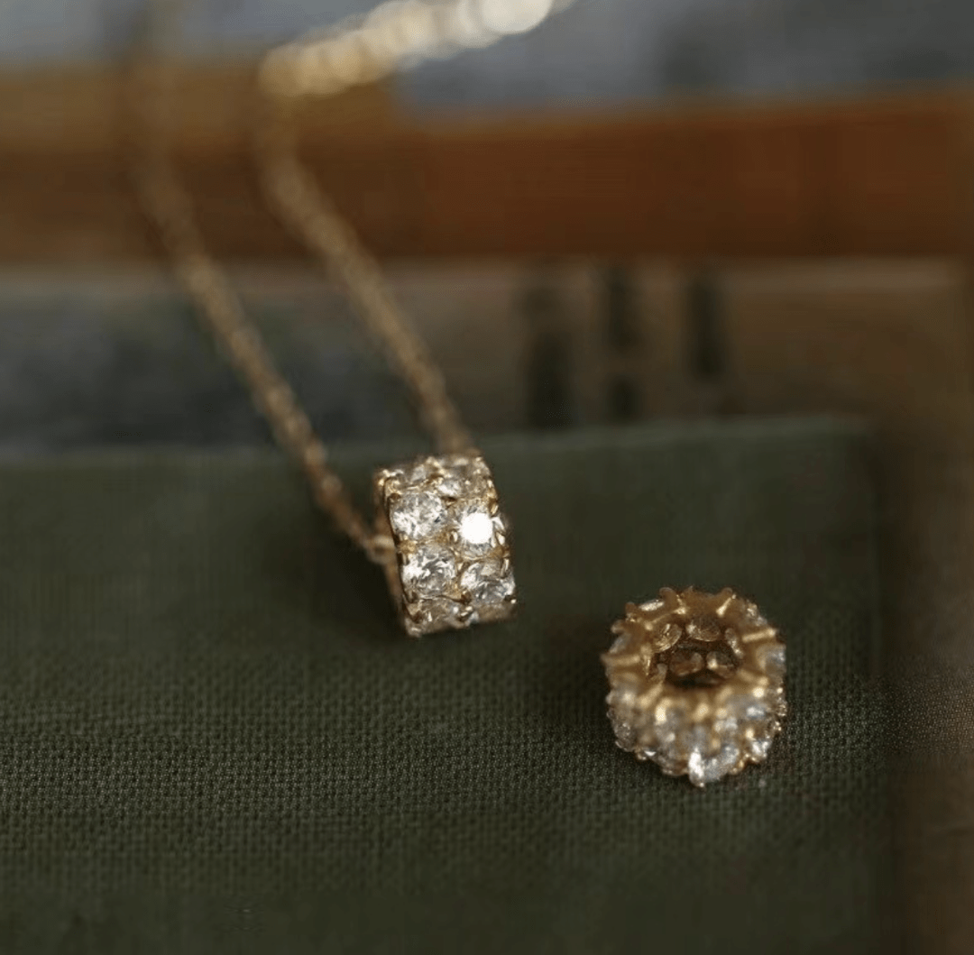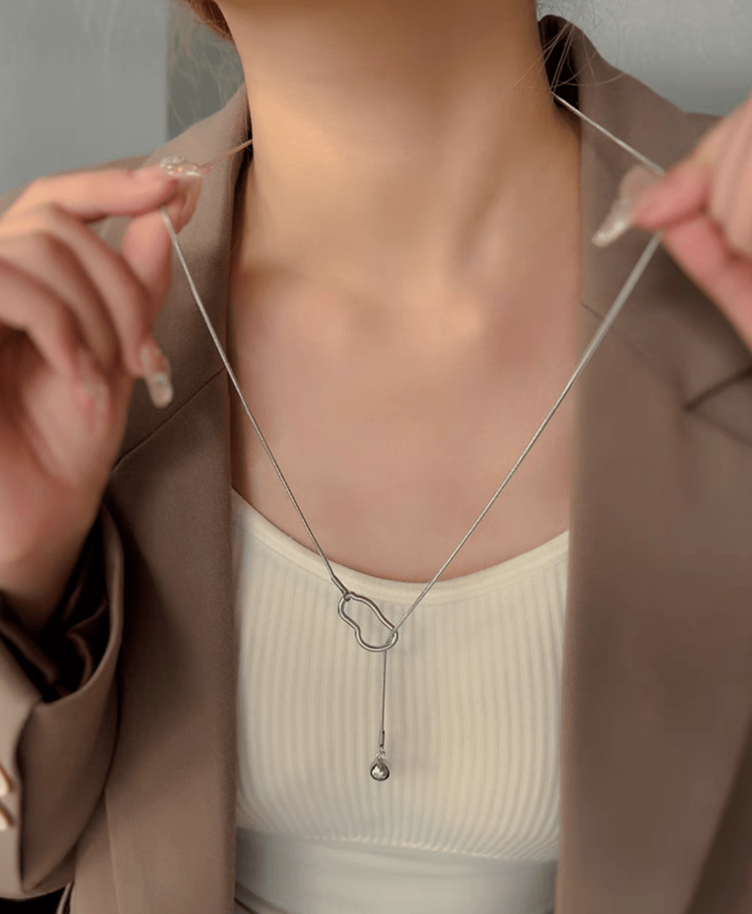 像这种超长的项链,一眼就能看到它的吊坠,而吊坠的样式也就决定了整件饰品甚至穿搭的调性。