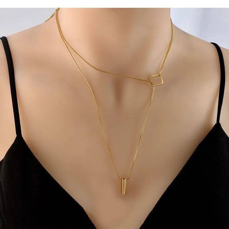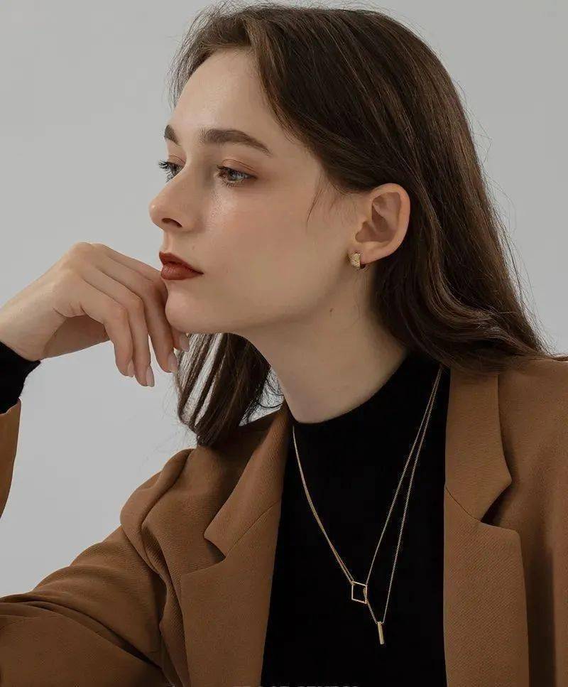 秋冬搭配毛衣,可以把项链稍微留长一些,作为一个点缀。如果是春夏穿着能够露出脖颈的衣服,比如方领或者V领,那完全可以尝试图中模特的搭配法,更加富有个性。
