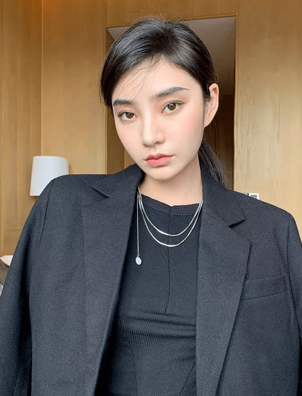 40-45cm基本上是项链的经典长度,对于几乎所有人、所有季节来说都合适,所以也是最百搭,很有性价比的一个长度。