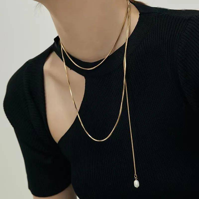 秋冬季打底衫应该是人手一件了,但单独内搭总会觉得脖颈空空的,这时候就很需要一根合适的毛衣链提亮。