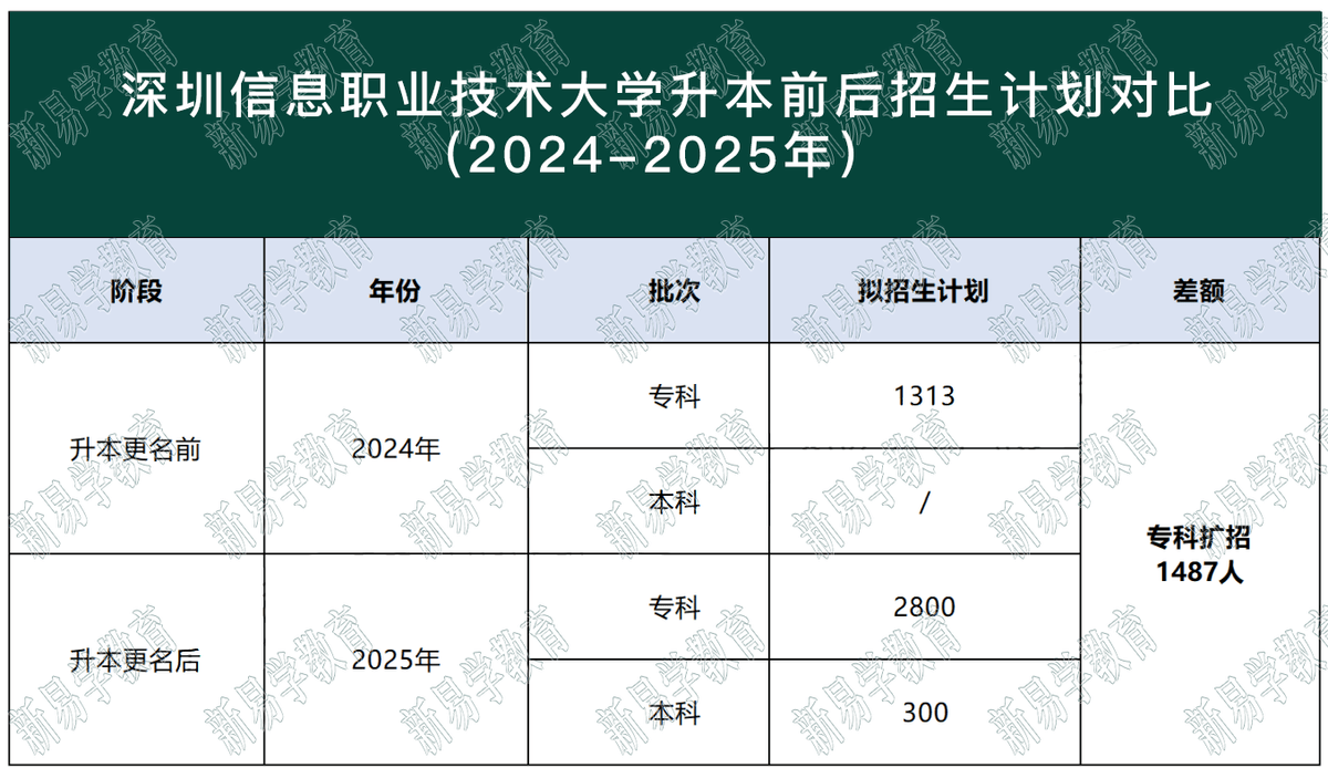 更名后的深信作为深圳市第7所本科大学,首招本科生就展现出强大的吸引力,本科首年招收5个专业共300人。专科批在广东招2800人,是3所升本院校中,专科招生计划最多的一校,对比2024年专科扩招了1487人。