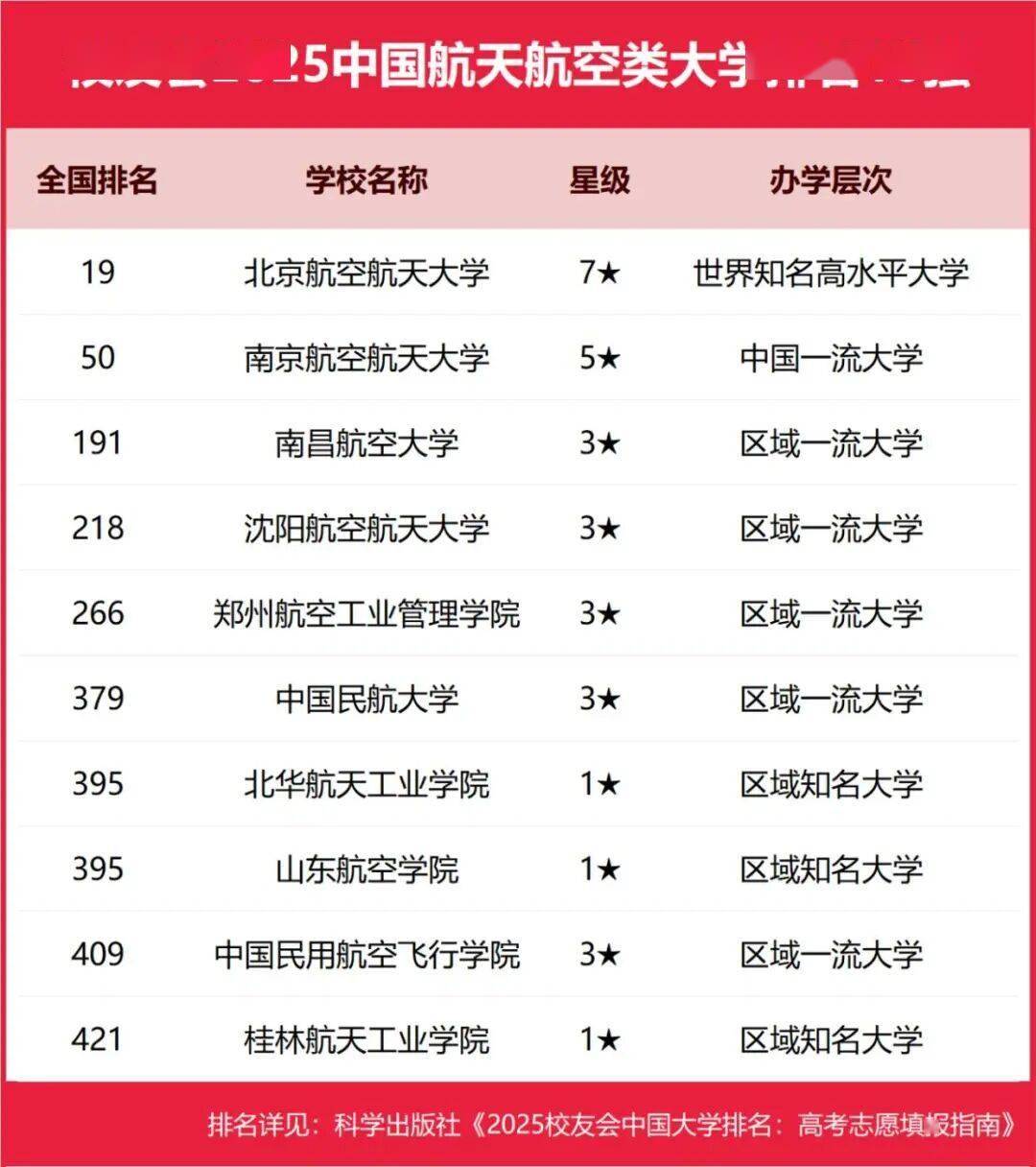 今天,通过校友会发布的排名榜单,来看看2025年我国航空航天类大学10强。