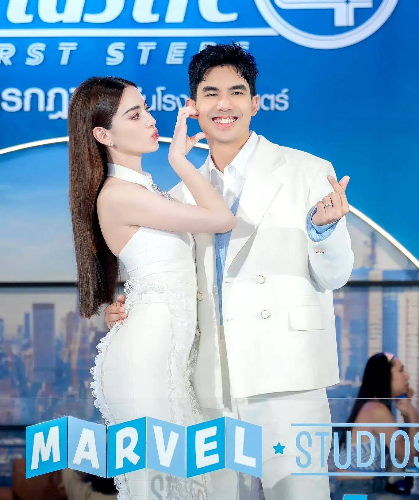 Ter向Mai求婚后,可谓形影不离。但凡有Mai出席的活动,几乎都能看到Ter相伴左右。7月23日,两人共同现身《神奇四侠》首映礼,接受媒体采访时自然被问及婚礼筹备进展。