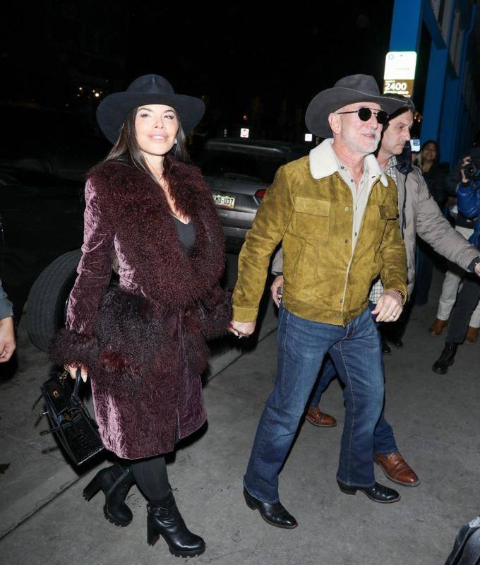 结婚以后,桑切斯的穿着品味逐渐提升,她的气质也变得更加高贵和有贵族气质。她身穿一件深紫色的丝绒大衣,配上皮毛领和袖子,展现出一种贵妇的气质。与贝佐斯手牵手出现,并共同戴上了牛仔帽,这对夫妇依然维持着深厚的感情和甜蜜的氛围。