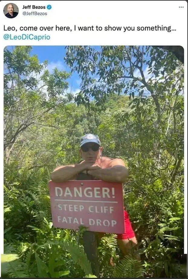 而贝索斯也很配合这一波热度,他事后发了一张秀肌肉的图片,表达对小李子的“不满”: