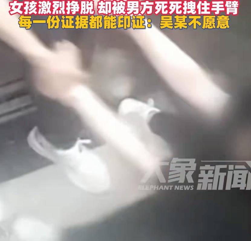 画面之中,一个女人拼命挣扎试图甩开未婚夫的手,而男人却像铁钳一样拽着她的手臂,并生生地把她从电梯里拖了出来。