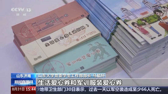 山东大学党委学生工作部部长 马毓轩:包括临时困难补助、被褥补助、生活爱心券和军训服装爱心券,同时,我们也准备了“暖心大礼包”和“文化大礼包”。“暖心大礼包”包括学生入学后日常所需的毛毡包、口袋杯、笔记本等生活用品。“文化大礼包”是深受山大师生喜爱的吉祥物公仔山小龙、山小虎和山小牛。