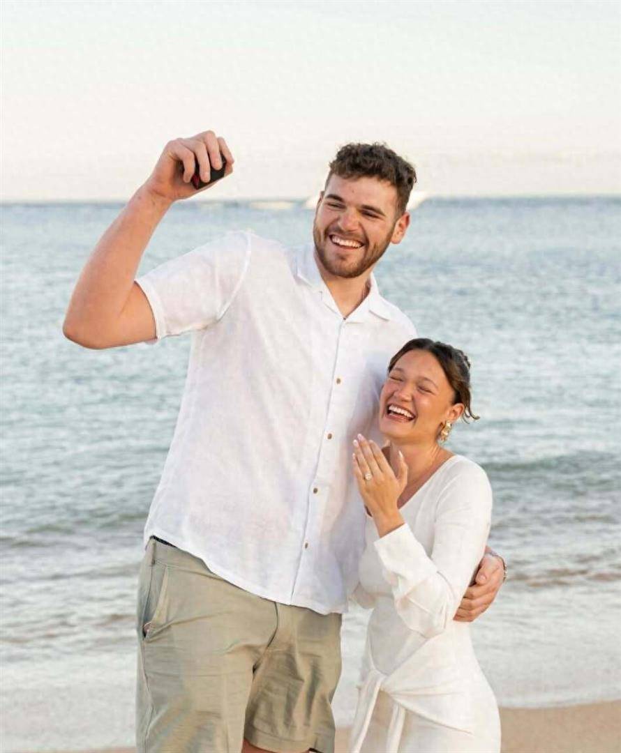 伟德国际(bevictor·1946)源自英国官方网站-开拓者队22岁的首发中锋克林根,在社交媒体上晒出了向相恋多年的女友玛德琳·罗斯求婚成功的甜蜜照片。 这位在球场上场均能抢下11.5个篮板的硬汉,单膝跪在海边,为女友戴上了钻戒。 令人意外的是,中国球员杨瀚森的女友Iris第一时间出现在评论区,送上了“太棒啦! ! 这是最好的消息! 恭喜恭喜! ! ”的热情祝福。 这不仅仅是一则球星喜讯,更串联起了两位年轻中锋在NBA赛场内外的不同故事。