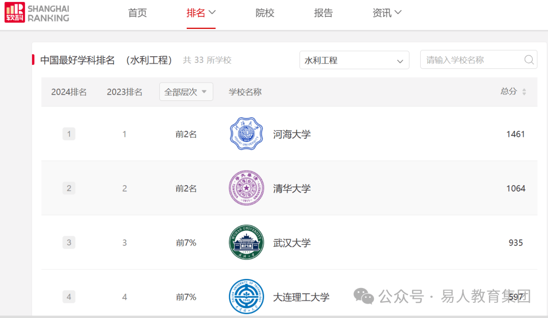 看到“河海大学”,伟德国际官网可能同学们不清楚这个学校和什么相关,河海的“水”特指水利专业,在2024软科专业排名上,水利工程专业河海大学的学科水平超过清华大学。