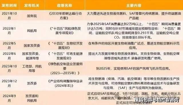 2023年10月,工业和信息化部、科技部、财政部、民航局联合印发《绿色航空制造业发展纲要(2023—2035年)》提出:到2025年,实现使用SAF的国产民用飞机示范应用。