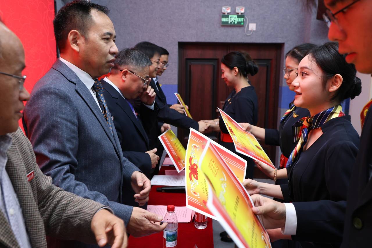 最后,郭总向新学员提出三点期望:一是以专业为基石,锤炼过硬本领,将技能练成本能;二是以素养为名片,塑造职业风范,伟德国际bv1946注重日常细节与团队协作;三是以梦想为航标,永葆对行业的热爱与坚守,直面挑战不放弃。郭总表示,未来知云时代将持续融入行业前沿经验,做学生成长的 “领航员”,并祝愿领导、教师工作顺利,同学们学业有成、早日翱翔蓝天,成为航空服务领域的闪亮之星。